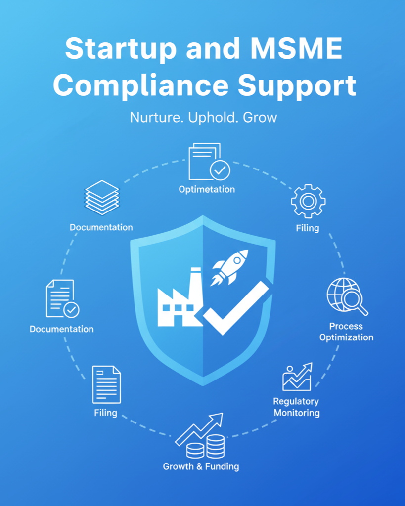Start-ups and MSMEs are the backbone of India’s economy, driving innovation, employment, and entrepreneurship. However, navigating the complex maze of registrations, statutory filings, and compliance requirements can often become a challenge for small and growing businesses. Non-compliance not only attracts penalties but also impacts investor confidence and business credibility.