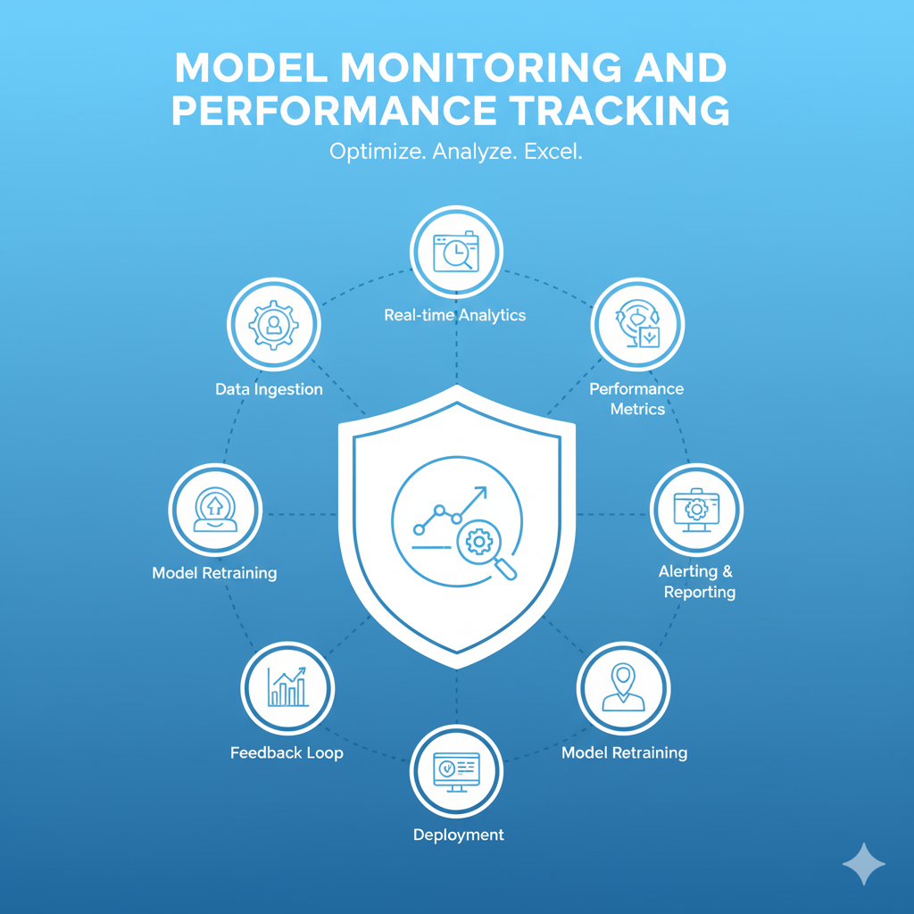 Model Monitoring and Performance Tracking is the continuous, real-time observation of machine learning models deployed in a production environment to ensure they remain accurate, reliable, and fair over time. This crucial service goes beyond simple infrastructure health checks by actively tracking key ML-specific metrics, such as data drift (changes in input data distribution), concept drift (changes in the relationship between input and output variables), and model accuracy degradation. By setting up automated alerts and dashboards, organizations can quickly detect when a model’s performance begins to slip, diagnose the root cause, and trigger a necessary retraining or investigation. This proactive approach minimizes financial loss, maintains customer trust, and maximizes the long-term utility of the deployed AI system.